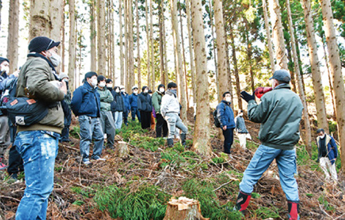 お客様のニーズに応える家を作るには木材の種類や質を目利きできることも大切です。良質な木が育つ気候条件や環境、切り出し、木の部位ごとの特徴を山林に出向いて学びます。また木が木材として加工されるまでの製材の過程を見学します。
